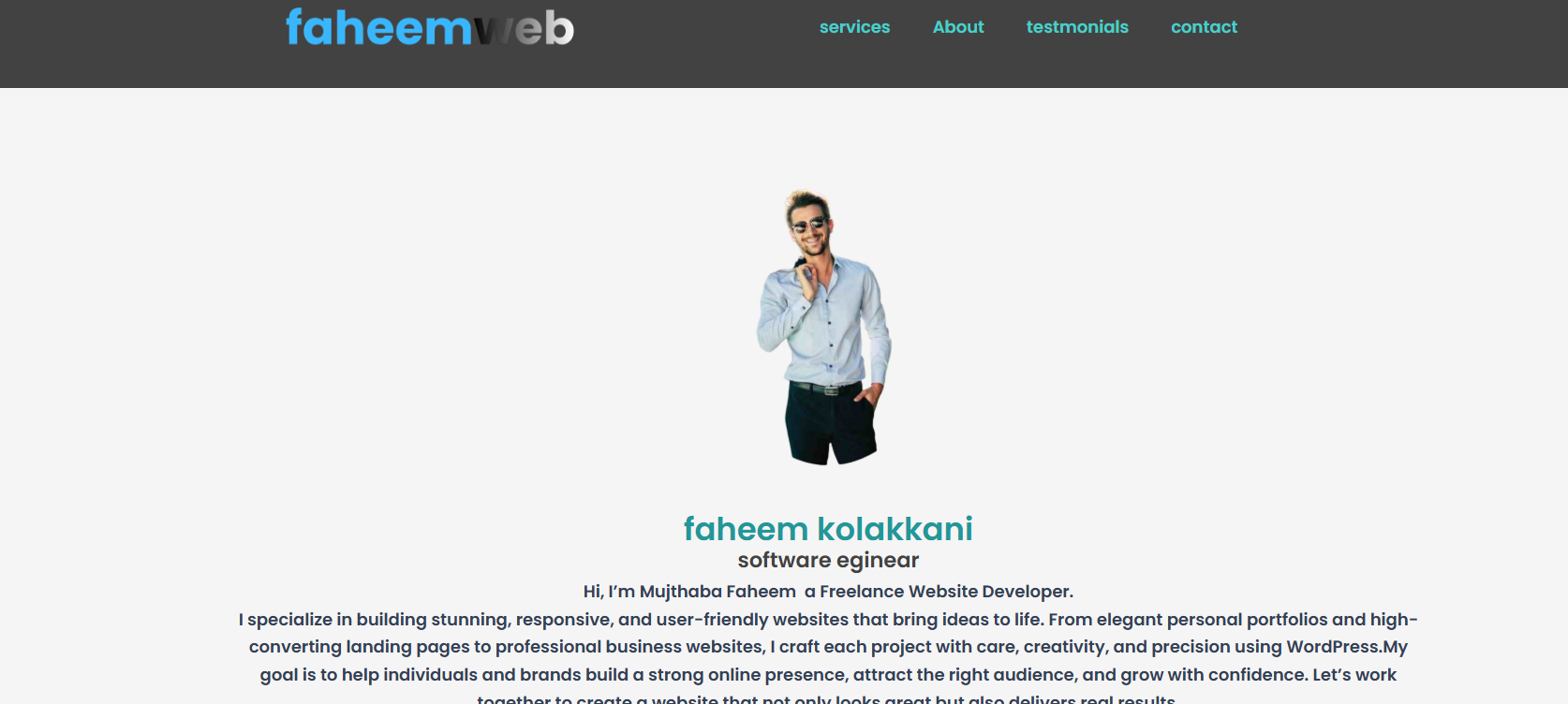 I’m Mujthaba Faheem, a freelance web developer who creates stunning personal websites, landing pages, and professional business sites using WordPress.